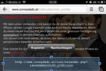 2. Klick auf 'Mein Profil', langer Klick auf den Link und Link kopieren (siehe Screenshot)